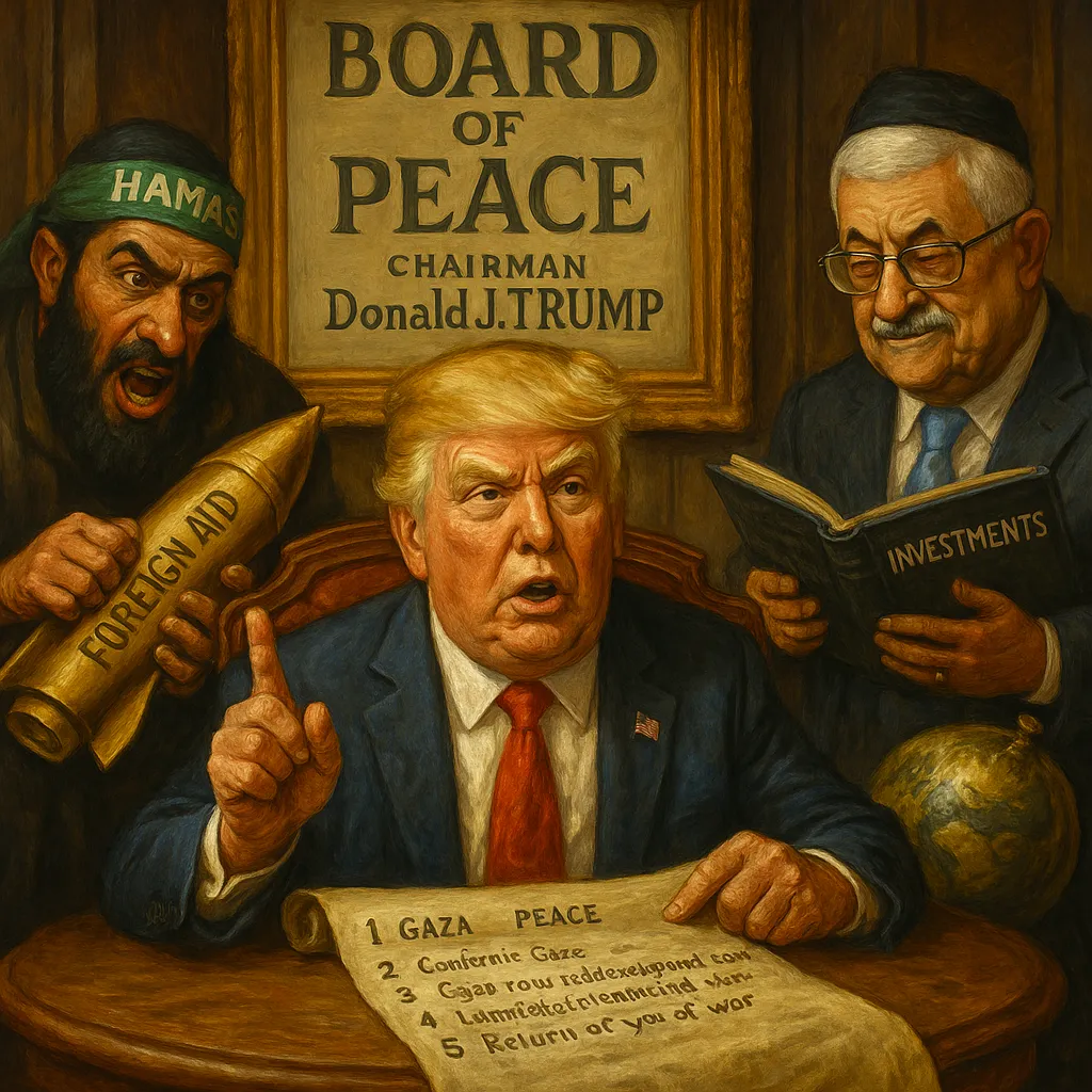 Sam dokument — dumnie nazwany Porozumieniem C-Spire — brzmi jak Sztuka zawierania umów przetłumaczona na dyplomatyczne esperanto. Dwadzieścia jego punktów obiecuje odrodzenie Gazy jako technokratycznej, wolnej od terroru utopii, nadzorowanej przez międzynarodową „Radę Pokoju”, której — rzecz jasna — przewodniczyć ma sam Trump, z Tonym Blairem w roli jego moralnego lokaja.