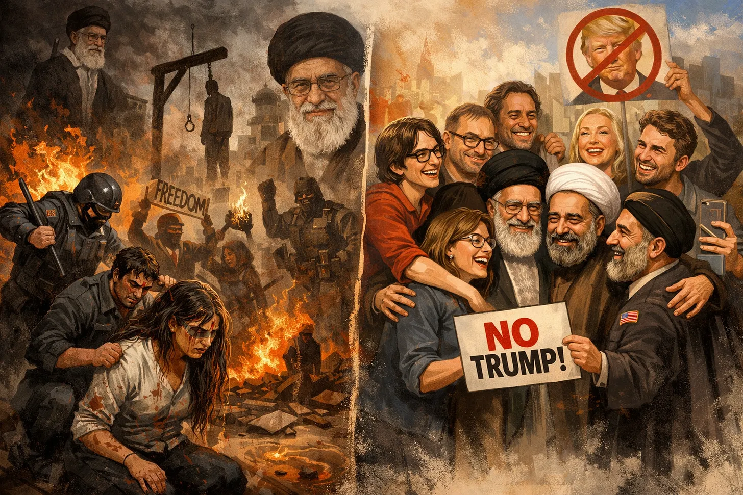 A jednak w Londynie, Toronto, Nowym Jorku czy Paryżu odbywają się wiece progresywnej lewicy, potępiające „zachodnią agresję wobec Iranu”, ostrzegające przed eskalacją i żądające zniesienia sankcji — przy jednoczesnym zdumiewającym przemilczeniu. Slogany mówią wszystko: „Ręce precz od Iranu”, „Przestańcie bombardować Iran”. Rzadko „Precz z ajatollahami”. Rzadko „Wolność dla Irańczyków”.